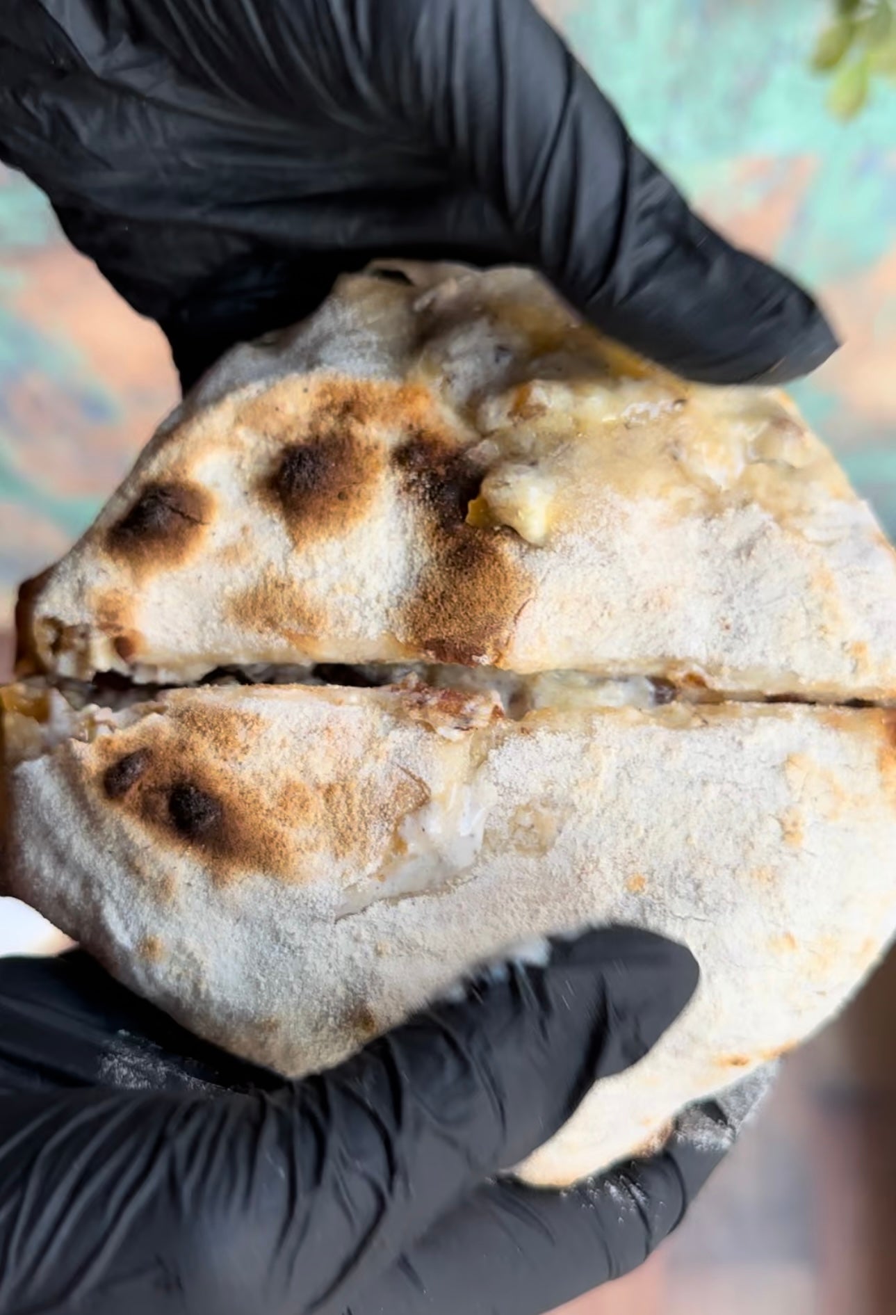 Hamburguesa de 200g de carne black angus acompañada de pepperoni, cheddar y mermelada de bacon. y todo envuelto en nuestra masa de pizza artesanal!