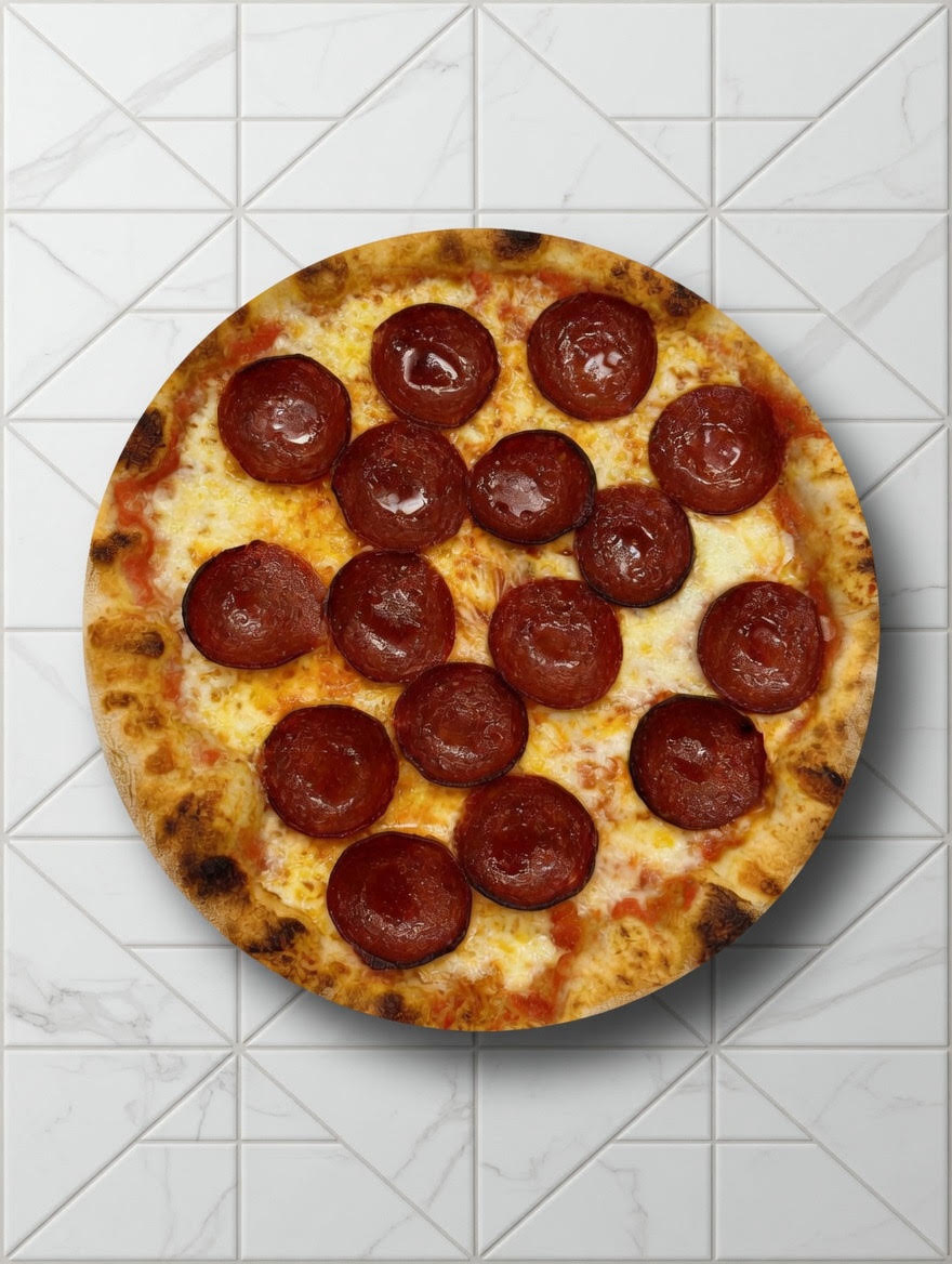 Salsa de tomate, mozzarella 100% y pepperoni.