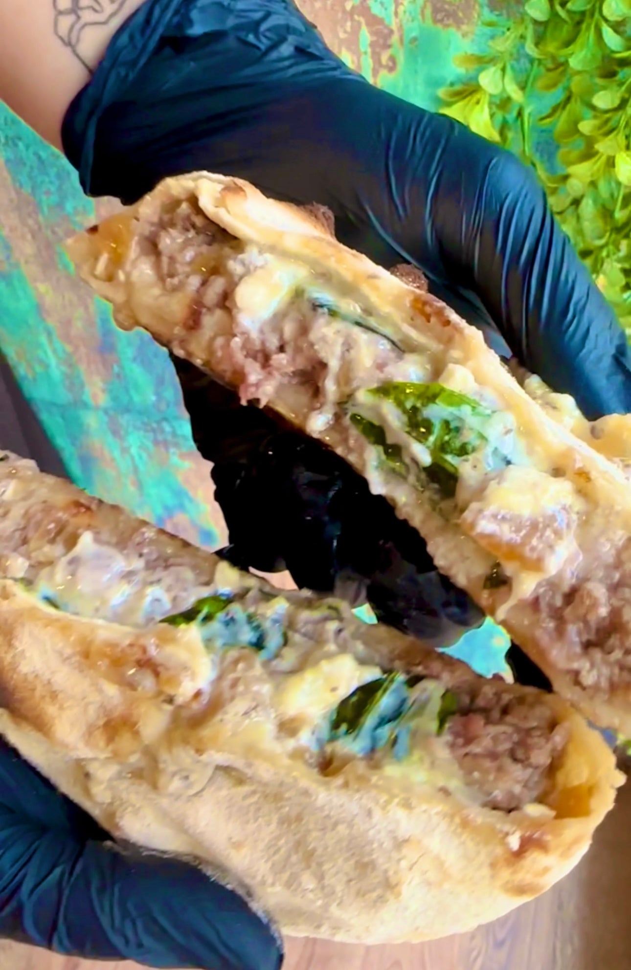Ingredientes: 200gr de carne premium black Angus, queso de cabra, cebolla caramelizada y salsa de nata con trufa.
